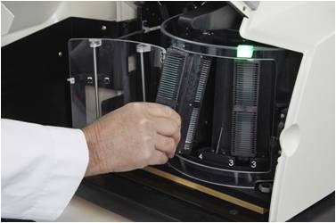 3、自動(dòng)裝載器可容納400張1×3″載玻片,且適用于各種類(lèi)型常規(guī)載玻片。掃描過(guò)程中,載玻片將被自動(dòng)傳輸?shù)捷d物臺(tái),掃描后送回裝載器。