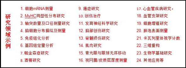 1、數(shù)字掃描顯微鏡及生命科學(xué)分析系統(tǒng)是由數(shù)字掃描顯微鏡、圖形工作站和生命科學(xué)組織形態(tài)學(xué)研究軟件組成。適用于自動(dòng)化數(shù)字病理學(xué)研究分析任務(wù),包括但不限于發(fā)育神經(jīng)科學(xué)、腦科學(xué)、眼科學(xué)、外科學(xué)、腎肝脾肺內(nèi)科學(xué)、心血管疾病、病理學(xué)等基礎(chǔ)醫(yī)學(xué)領(lǐng)域和動(dòng)物學(xué)、植物學(xué)、分子與細(xì)胞生物學(xué)、遺傳學(xué),微生物學(xué),基因組學(xué)、藥理學(xué)、流行病學(xué)、中醫(yī)學(xué)、海洋生物學(xué)、酗酒研究等泛生命科學(xué)的所有領(lǐng)域,從而得出形態(tài)計(jì)量學(xué)、病理學(xué)以及材料相容性等數(shù)據(jù)分析報(bào)告。