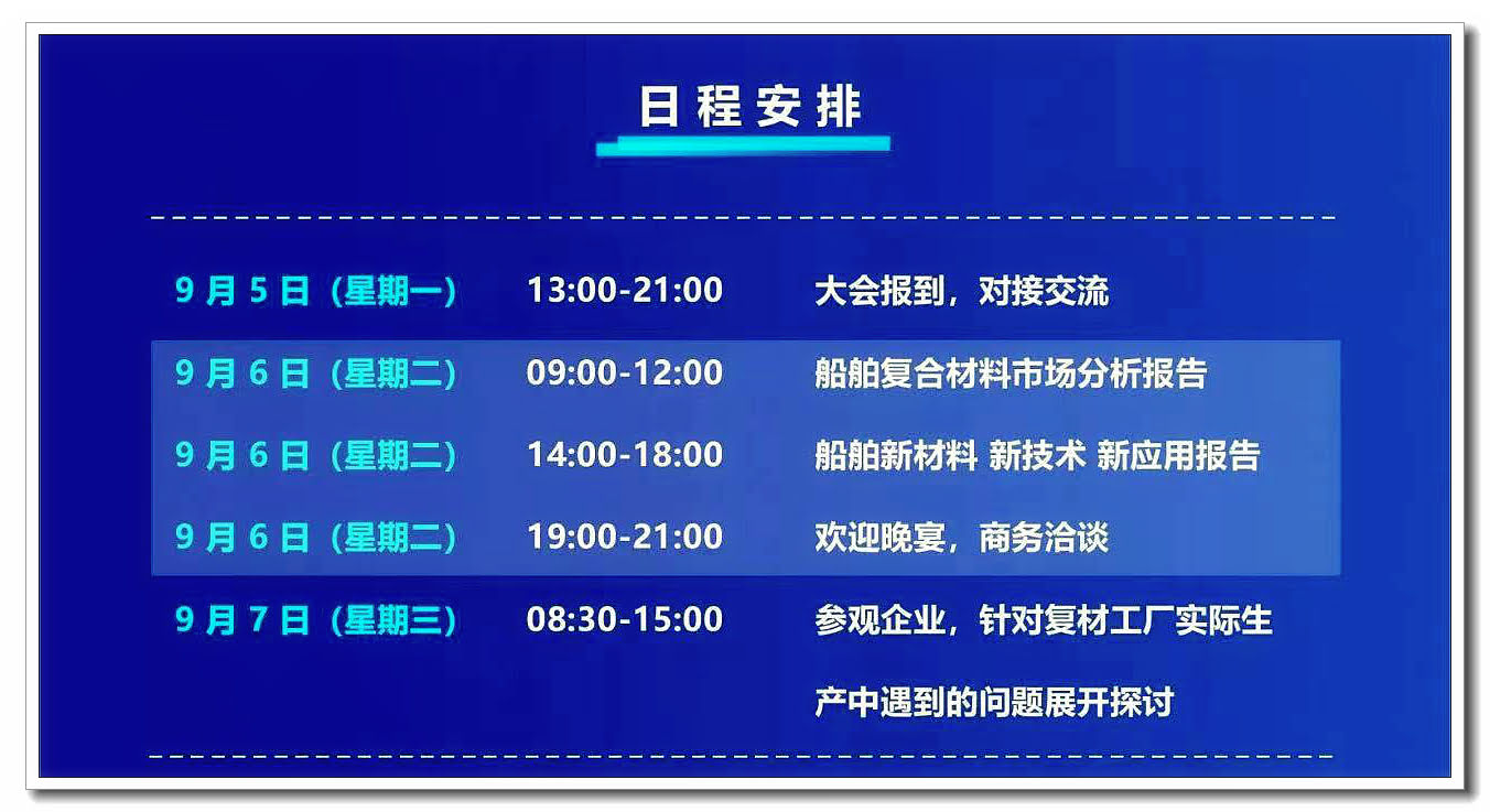 因此,為全面貫徹落實國家十四五規(guī)劃,助力船舶與海洋工程完成雙碳目標(biāo)的歷史性任務(wù),學(xué)習(xí)交流國內(nèi)外船舶復(fù)合材料及制品的先進(jìn)技術(shù)、前沿工藝與市場趨勢,北京共贏聯(lián)盟國際科技有限公司邀請您蒞臨由中國船舶工業(yè)行業(yè)協(xié)會船艇分會、廣東漁船漁機(jī)漁具行業(yè)協(xié)會與中國復(fù)材網(wǎng)2022 年 9 月 5—7 日在廣東·珠海共同舉辦的“2022 船舶復(fù)合材料應(yīng)用高峰論壇暨新工藝·新材料·新應(yīng)用工廠現(xiàn)場演示會”。