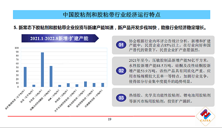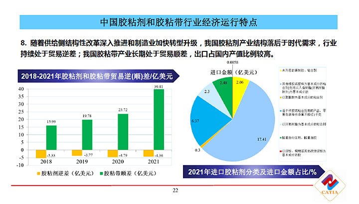 中國(guó)膠粘劑和膠粘帶工業(yè)協(xié)會(huì)秘書長(zhǎng)楊栩介紹了中國(guó)膠粘劑和膠粘帶行業(yè)的市場(chǎng)現(xiàn)狀,發(fā)布了行業(yè)各品種的最新統(tǒng)計(jì)數(shù)據(jù),系統(tǒng)梳理了膠粘劑和膠粘帶相關(guān)政策和環(huán)境變化,并分享了2021年以來(lái)行業(yè)經(jīng)濟(jì)運(yùn)行的十大特點(diǎn),以及行業(yè)未來(lái)的八大展望。