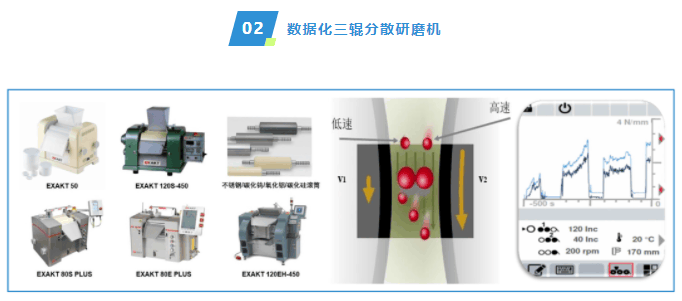 EXAKT三輥分散研磨機(jī):專用于高分子漿料的均質(zhì)分散、研磨加工,如聚合物基體材料、碳納米材料、石墨烯、潤(rùn)滑油脂、各種涂料、電子漿料、化妝品和粘接劑等,具備實(shí)驗(yàn)室研究和規(guī)?;a(chǎn)的多種機(jī)型。輥筒可選鍍鉻不銹鋼、碳化鎢、氧化鋁或碳化硅材質(zhì)??蓪?shí)現(xiàn)顆粒細(xì)度<5μm,最大產(chǎn)量60L/H,是世界著名品牌。其顯著特點(diǎn):開機(jī)自動(dòng)校準(zhǔn);自動(dòng)貼合的刀座系統(tǒng);無(wú)段氏單邊控制間距或間距和壓力雙模式調(diào)節(jié);輥筒溫度可控制;電子控制系統(tǒng)且以數(shù)字或圖形實(shí)時(shí)顯示生產(chǎn)參數(shù);數(shù)據(jù)可存儲(chǔ)調(diào)用;高安全性的清潔模式、安全裝置與反轉(zhuǎn)模式,高于ANSI的安全標(biāo)準(zhǔn)規(guī)范。
