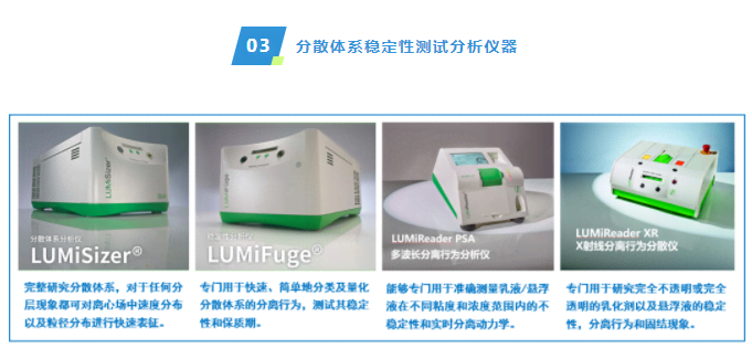10.可檢測(cè)分析:①膠體穩(wěn)定性;②粒徑分布;③沉降/上浮;④澄清速率;⑤預(yù)測(cè)產(chǎn)品保存期;⑥觀察絮凝/團(tuán)聚現(xiàn)象;⑦沉降層/懸浮層厚度及緊密程度;⑧研究膠體結(jié)晶化等。已經(jīng)具有膠粘劑穩(wěn)定性分析和力度表征、快速評(píng)估新型納米碳材料作為潤(rùn)滑油添加劑的可能性、快速評(píng)估碳纖維施膠劑分散體的穩(wěn)定性等眾多方面的應(yīng)用案例。