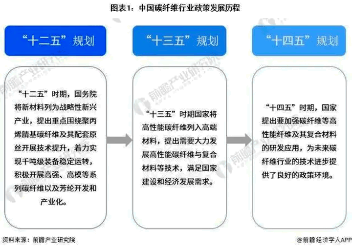 “十二五”規(guī)劃提出重點圍繞聚丙烯氰基碳纖維技術(shù)開展技術(shù)提升;“十三五”規(guī)劃時期將高性能碳纖維列入高端材料;“十四五”規(guī)劃提出要加強碳纖維等高性能纖維及其復合材料的研發(fā)應用,為未來碳纖維行業(yè)的技術(shù)進步提供了良好的政策環(huán)境。