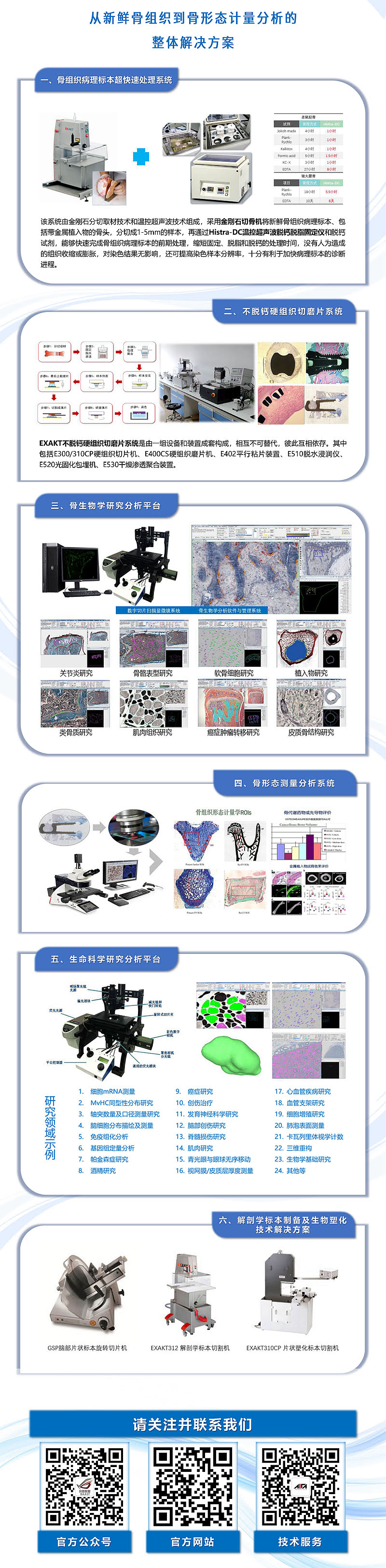 北京共贏國際聯盟國際科技有限公司在B48展位上,現場展示了:① 病理病理超快處理系統(tǒng),可以精確、安全、快速地為病理學研究提供組織的前期處理工作;② EXAKT生物醫(yī)學硬組織切磨系統(tǒng),是將不能用常規(guī)設備制備成組織切片的軟硬組織標本制成不脫鈣醫(yī)學組織切片,并保持軟硬組織、組織與植入物之間的原有組織結構形態(tài)。該切磨系統(tǒng)特殊的技術設計、技術配置以及獨特的工藝方法,均與常規(guī)設備和工藝不同。新鮮的醫(yī)學組織標本經過取材固定及脫水處理后,用光固化樹脂浸透、包埋、再行鋸片、磨片、染色等步驟制成厚約 10μm的醫(yī)學組織切片。采用 EXAKT 切磨系統(tǒng)設備制備的醫(yī)學軟硬組織切磨片在顯微鏡下能夠清楚準確地觀察到組織的微觀結構及其之間的相互關系。EXAKT切磨系統(tǒng)設備能為醫(yī)學軟硬組織疾病的科學研究、新材料的生物相容性研究和嵌入物研究以及醫(yī)學院教學等提供可靠的組織學評價依據。