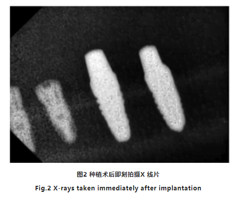 本實(shí)驗(yàn)采用X線片方法,觀察種植體植入術(shù)后8周的骨界面愈合情況,結(jié)果顯示3組標(biāo)本均未發(fā)現(xiàn)種植體周圍異常透射影像,植體植入的三維位置與相互距離均正確,表明實(shí)驗(yàn)動(dòng)物模型成功建立。