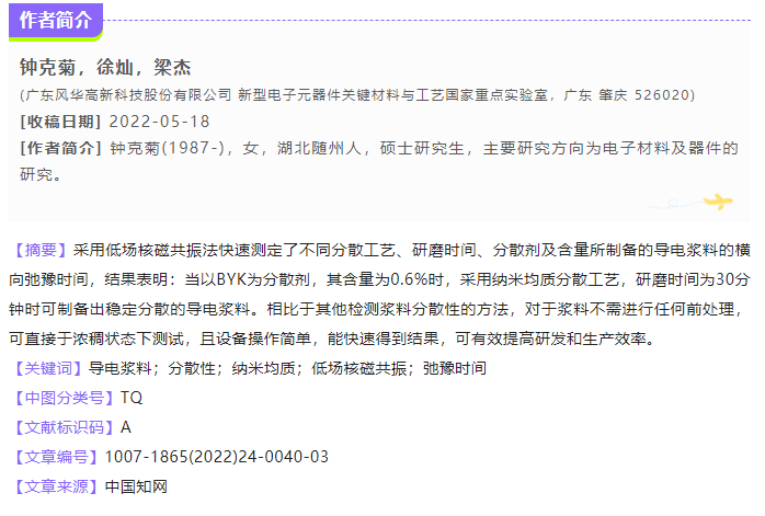 (1) 測定三種不同分散工藝制備的電子漿料的分散均勻性,納米均質(zhì)分散工藝的弛豫時(shí)間最短,分散效果最好。