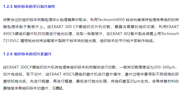 利用該技術方法制備含骨修復材料腰椎椎體不脫鈣病理組織切片時,需注意以下細節(jié):