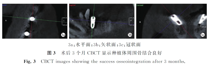 CBCT示所有種植體均與骨組織形成良好的骨結(jié)合(圖3)。